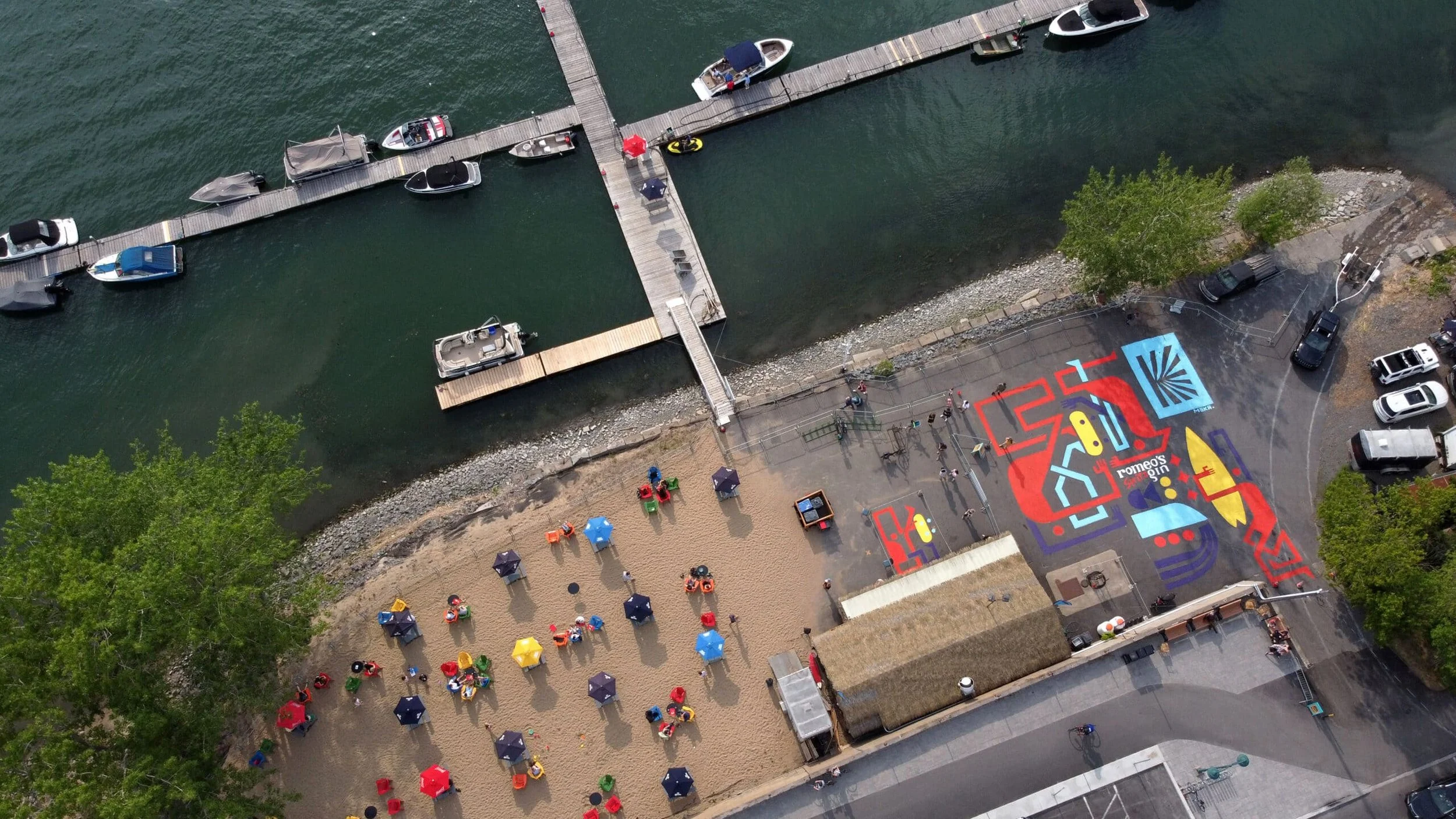 In collaboration with Romeo’s Gin, I took part in reimagining the Marina of Boucherville through a large-scale floor mural inspired by the vibrant spirit of our signature Spritz cocktail. The goal was simple: bring color, energy, and a sense of fun back into a shared public space.